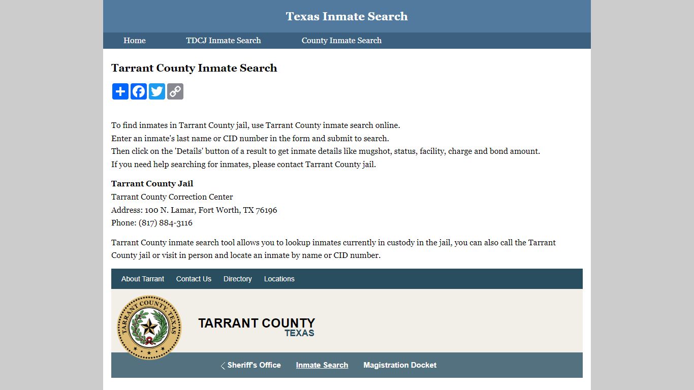 https://www.inmatesearchtexas.org/Tarrant_County.html